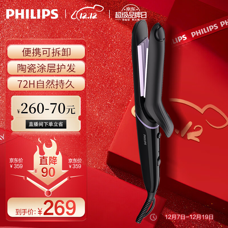 飞利浦(PHILIPS)电卷发棒 发根蓬松夹 玉米卷 一键拆卸 小波浪 BHH808/05 紫色价格:299.00元!