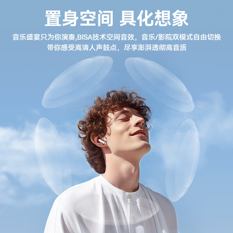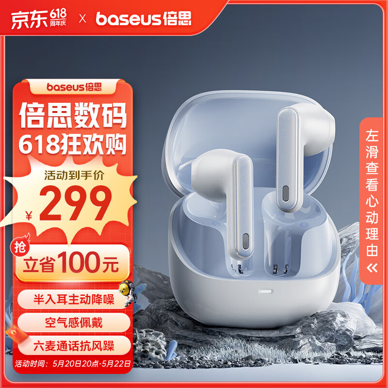 倍思M3 真无线蓝牙耳机 主动降噪耳机 半入耳舒适降噪 30h长续航蓝牙5.3适用苹果小米华为手机 白价格:399.00元!