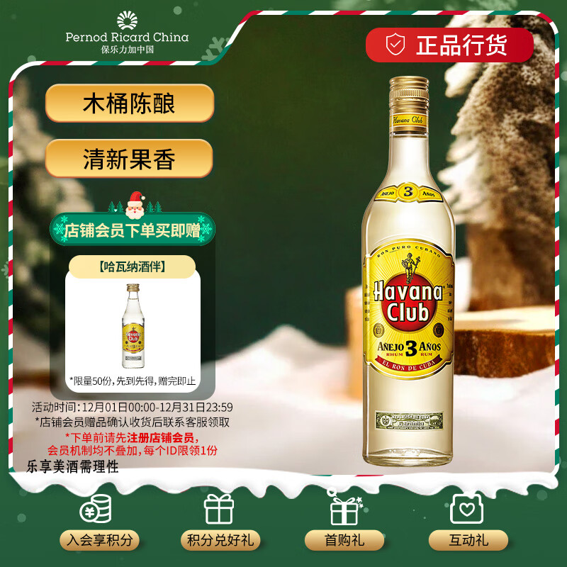 哈瓦纳俱乐部(HAVANA CLUB ) 3年陈酿朗姆酒 莫吉托基酒 700ml 年货送礼价格:90.00元!