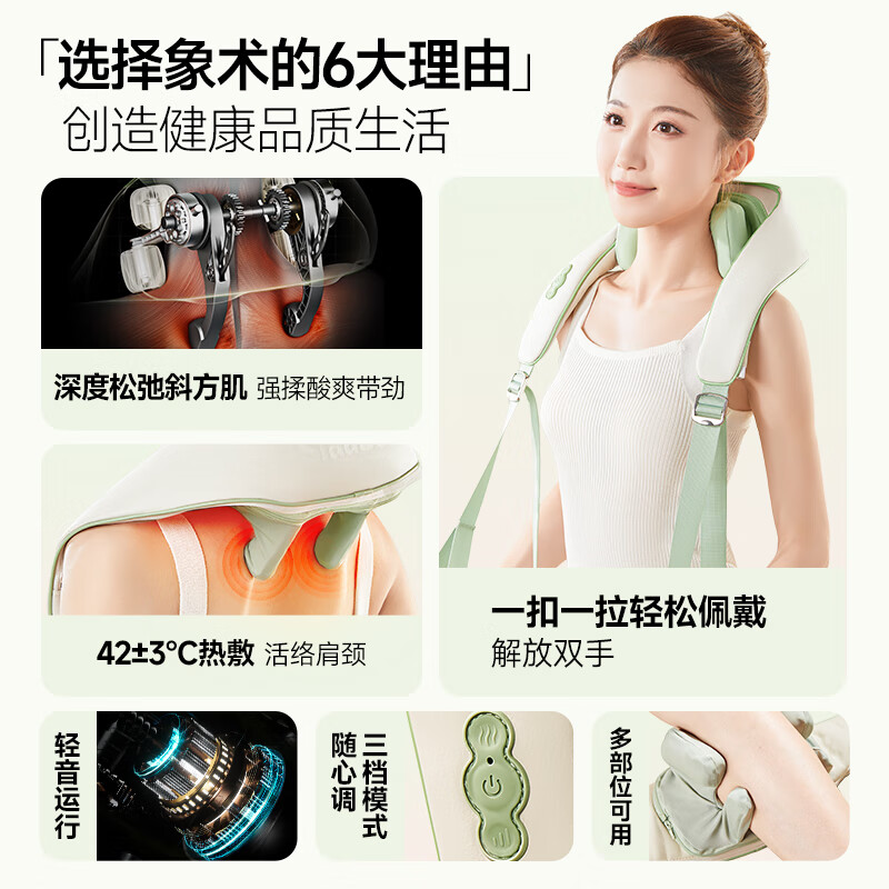 象术(SIAASOO)颈椎按摩器颈部按摩仪肩颈按摩器披肩斜方肌腰部按摩枕热敷 送男女朋友父母 女神节礼物情人节礼物 肩颈按摩仪N3S海沫绿【新升级】价格:799.00元!