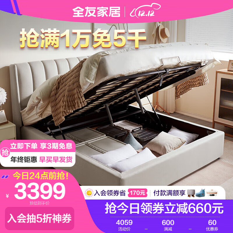 全友家居 床现代简约科技布床双人床卧室储物高箱床1.8米家具105207C价格:4059.00元!