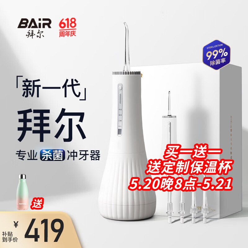 拜尔M11 智能杀菌电动冲牙器 专业LED智显水牙线大水箱家用正畸专用牙齿清洁洗牙神器礼盒 1号塔专业白价格:419.00元!