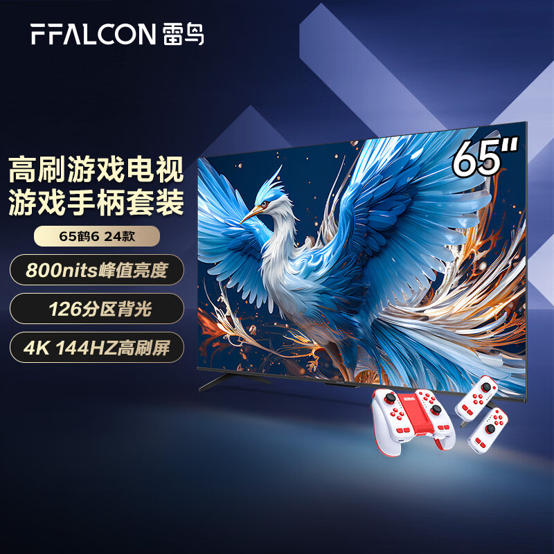 FFALCON雷鸟 鹤6 24款 65英寸游戏电视+运动加加游戏手柄套装 144Hz高刷 4K液晶平板电视机65S575C PRO价格:4198.00元!