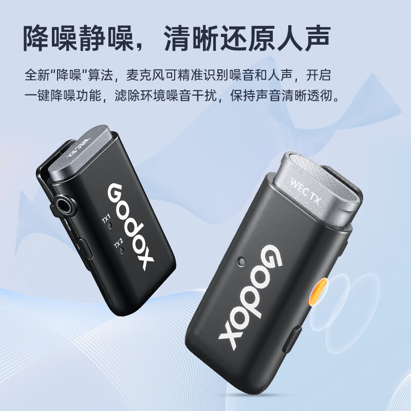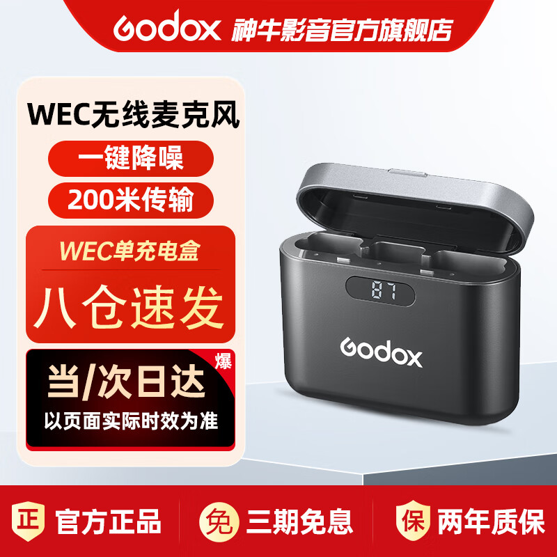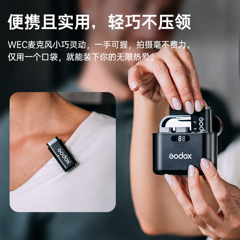神牛(godox)WEC无线领夹式麦克风小蜜蜂收音器拍视频降噪采访适配录音唱歌抖音主播直播设备话筒 单充电盒价格:158.00元!