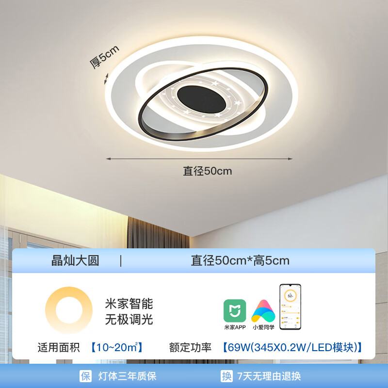 HD米家智能语音吸顶灯 led北欧卧室灯客厅灯饰餐厅书房现代简约灯具价格:479.00元!