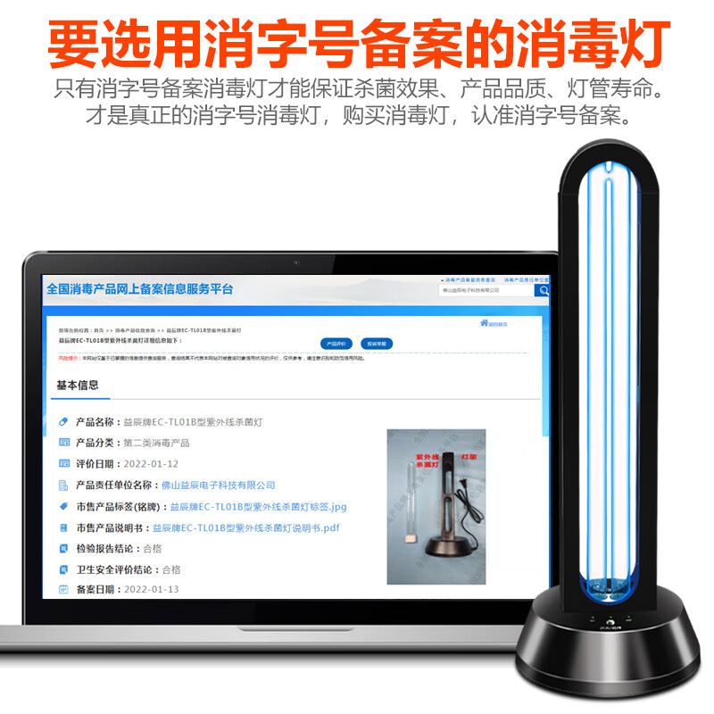 益辰 38W紫外线消毒灯家用臭氧除异味杀菌灯灭菌灯移动幼儿园除螨遥控价格:149.00元!