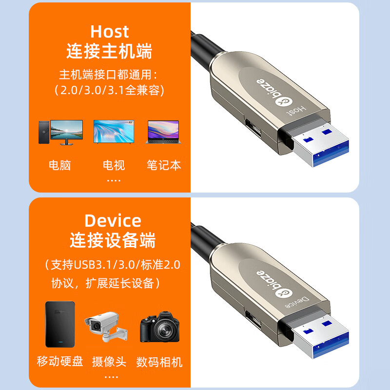 商品名称:毕亚兹USB3.0/3.1光纤线公对公【兼容USB2.0】50米XL30