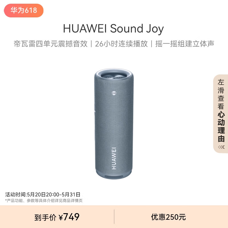 华为Sound Joy 便携式智能蓝牙音箱 电脑音响 两台组建立体声 26小时长续航户外音箱 海岛蓝价格:749.00元!