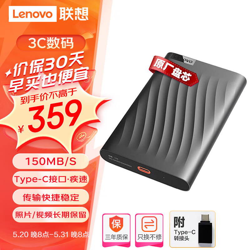 联想(Lenovo)1TB 移动硬盘 Type-C接口 2.5英寸 机械硬盘 轻薄便携高速传输 全金属 稳定耐用 F309Pro价格:359.00元!