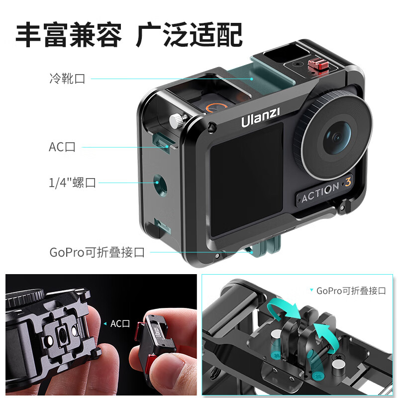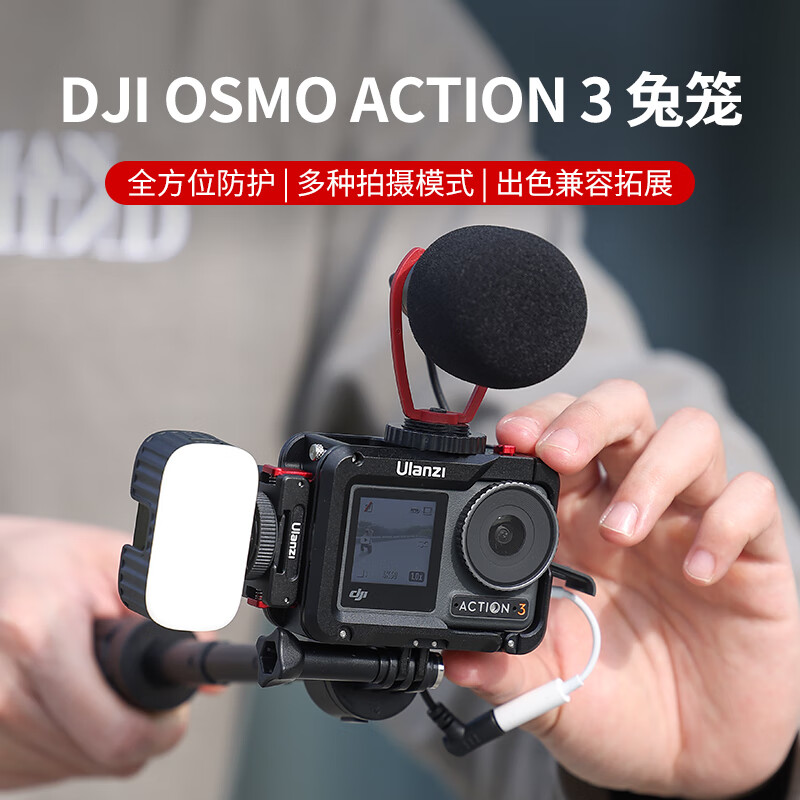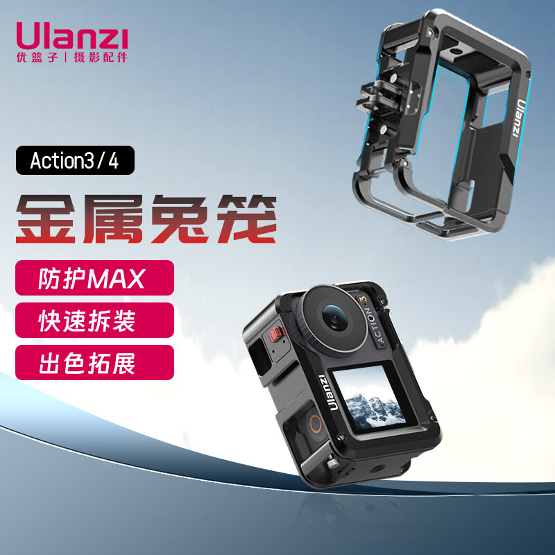 ulanzi 优篮子 大疆DJI OSMO Action3/4金属兔笼运动相机防摔散热高清防抖摩托车记录仪拍照摄影保护壳价格:198.00元!