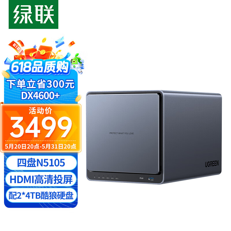 绿联 私有云DX4600+ 8T四盘位Nas网络存储个人云硬盘服务器相册备份文件同步手机平板扩容适用iPhone15价格:3799.00元!