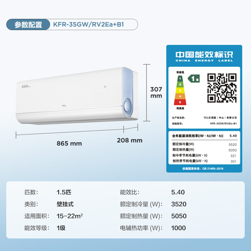TCL空调1.5匹 真省电 空调挂机 超一级能效省电35% 变频冷暖 卧室挂机KFR-35GW/RV2Ea+B1以旧换新价格:2499.00元!