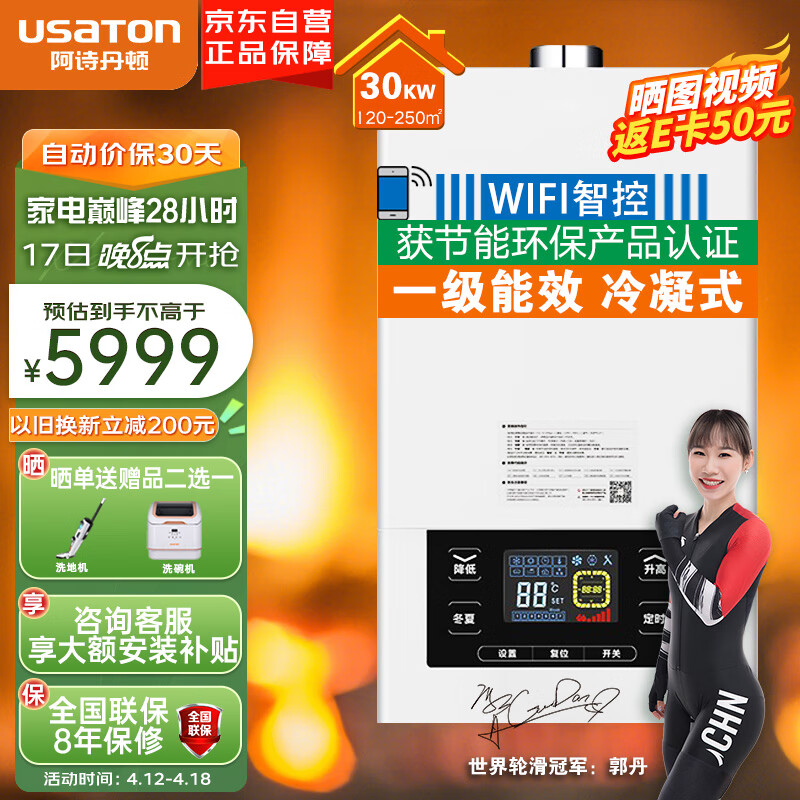 阿诗丹顿(USATON)一级能效冷凝机 燃气壁挂炉天然气地暖锅炉采暖燃气热水器LL1PBD30-L3017S价格:5999.00元!