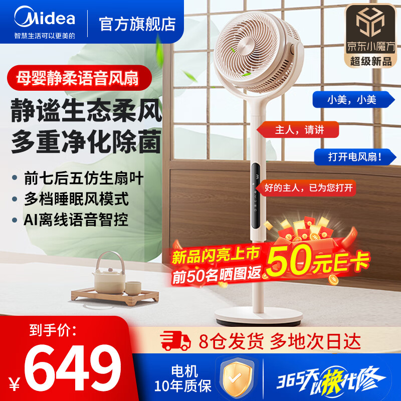 美的(Midea)四季净化扇空气循环扇遥控净化电风扇家用落地摇头电扇涡轮换气扇循环对流风扇宿舍低噪 创新静谧生态风-语音互联-GDH24RS价格:849.00元!