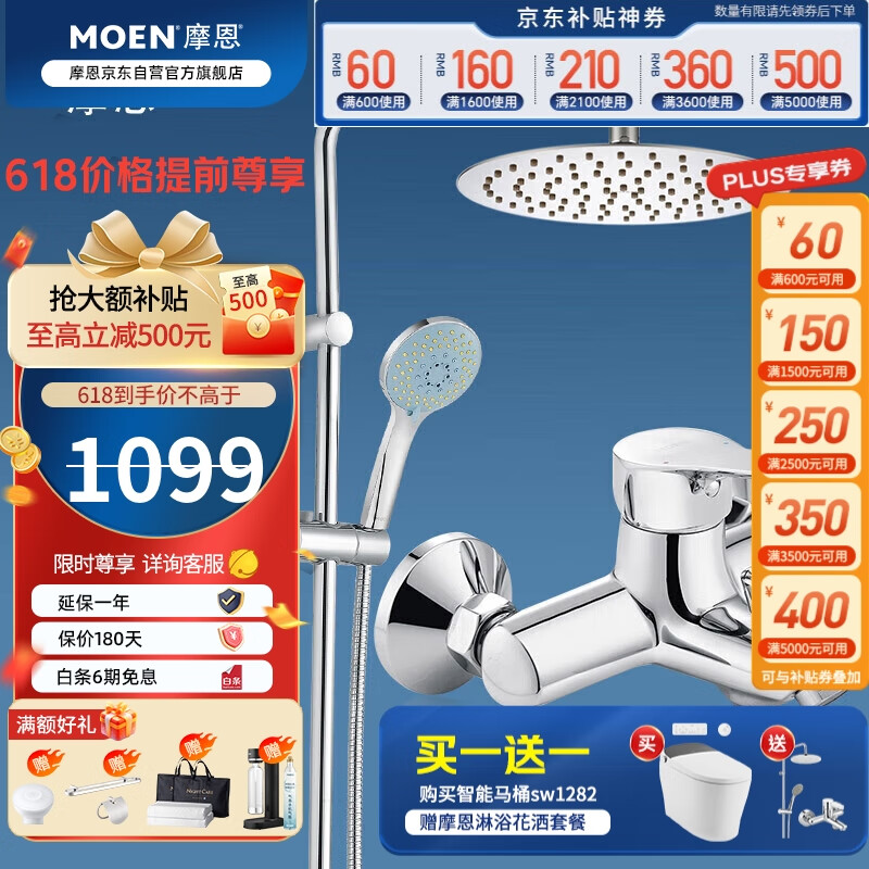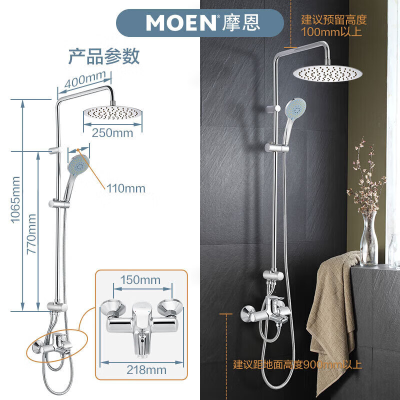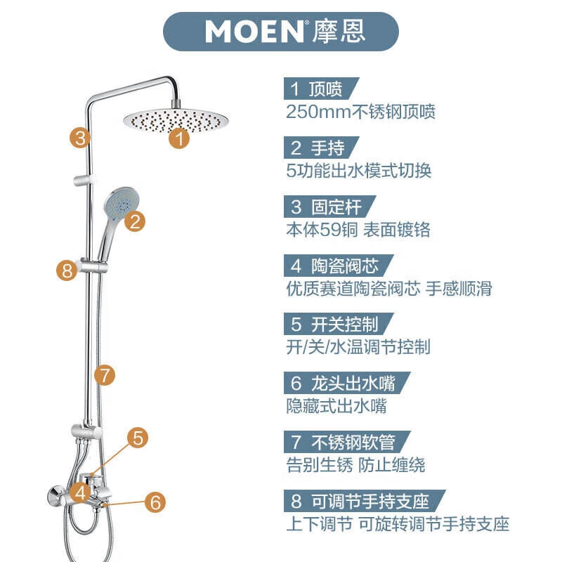 摩恩(MOEN)淋浴花洒套装 空气注入增压多功能手持喷头 10寸不锈钢圆形顶喷价格:1299.01元!