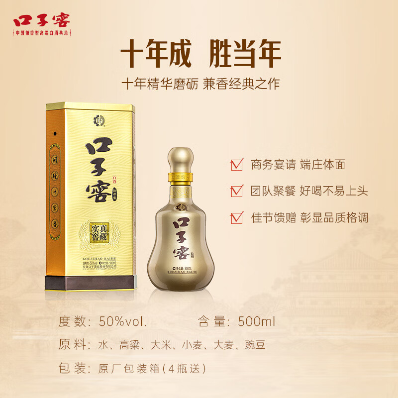 口子窖 十年型 兼香型白酒 50度 500ml 口子酒 纯粮酿造价格:380.00元!