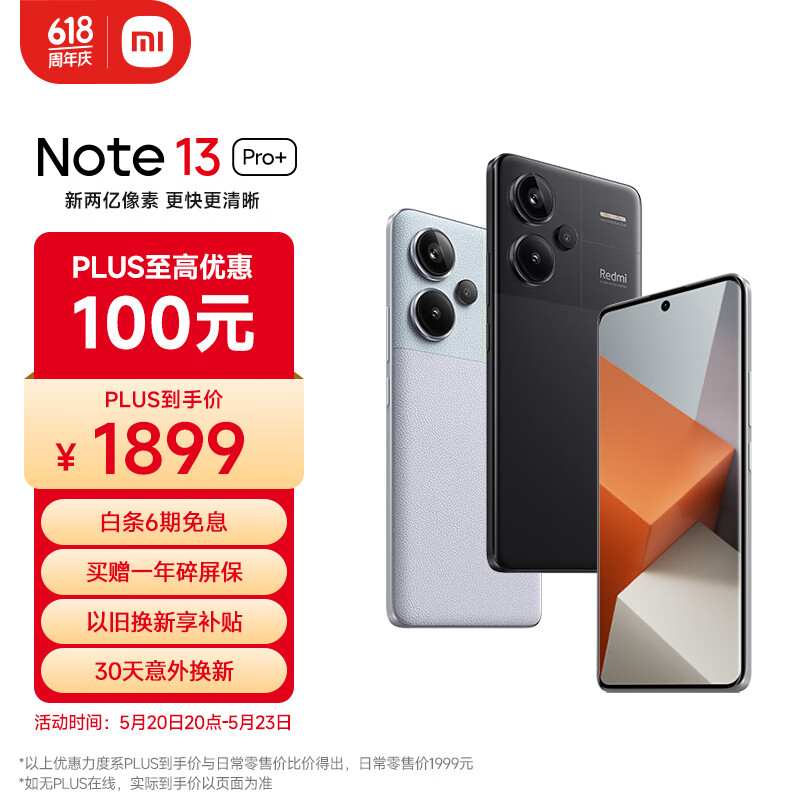 小米Redmi Note13Pro+ 新2亿像素 第二代1.5K高光屏 12GB+512GB 子夜黑 SU7 5G手机价格:1999.00元!