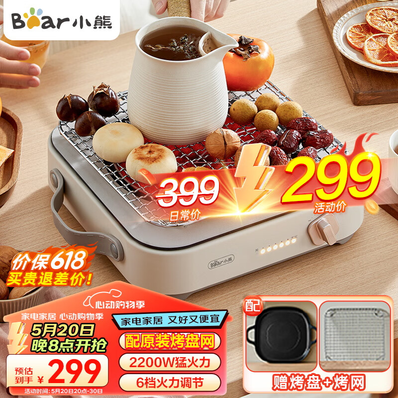 小熊(Bear)电磁炉 大功率电陶炉 小型电磁灶 家用不挑锅具6档火力爆炒 围炉煮茶电池炉2200W DTL-D22R1价格:299.00元!