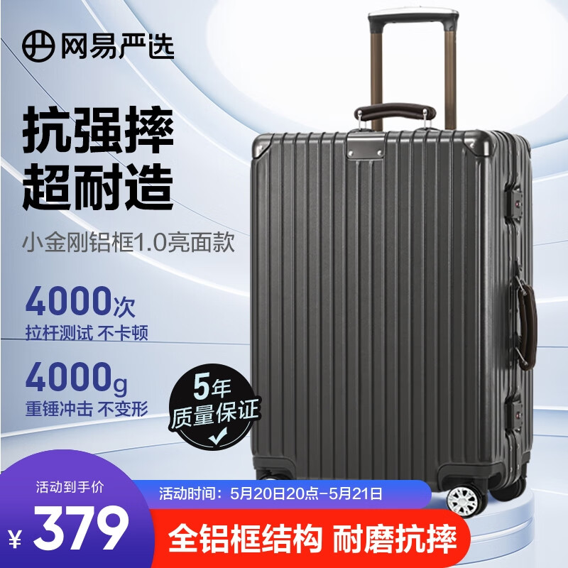 网易严选20英寸铝框小金刚拉杆箱登机箱小型行李箱升级款 干湿分离 深灰色价格:379.00元!