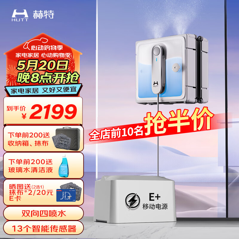 赫特W9擦窗机器人配移动电源套装版擦玻璃神器价格:2649.00元!