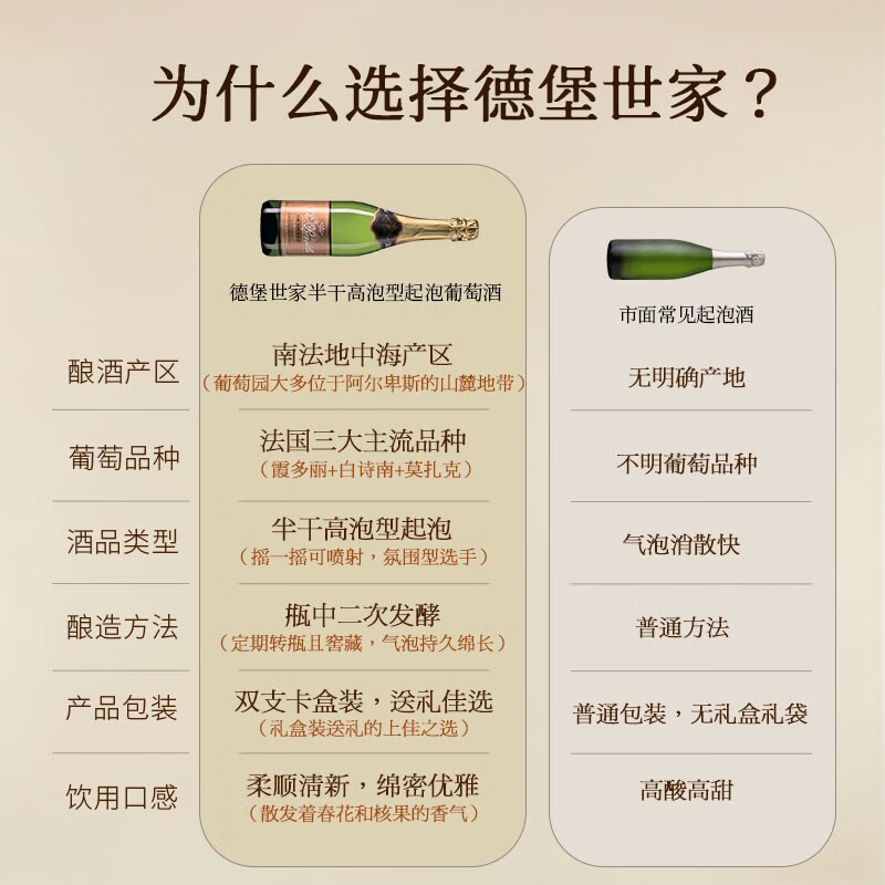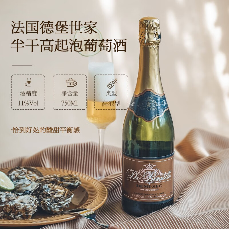 菲特瓦【传统香槟法】法国原瓶进口起泡白葡萄酒配2香槟杯礼盒赠礼 德堡世家白起泡酒 750ml双支装价格:228.00元!