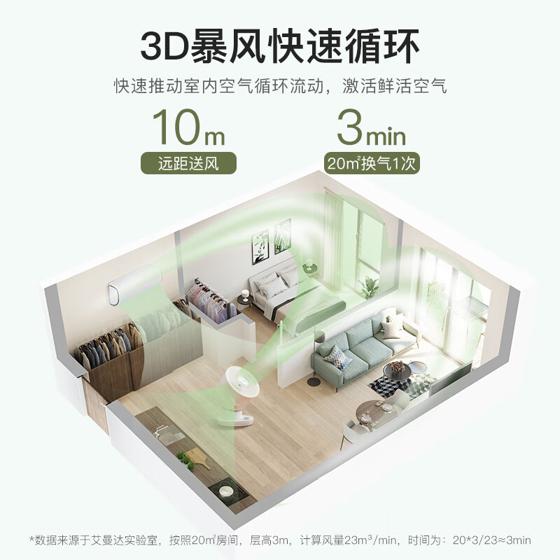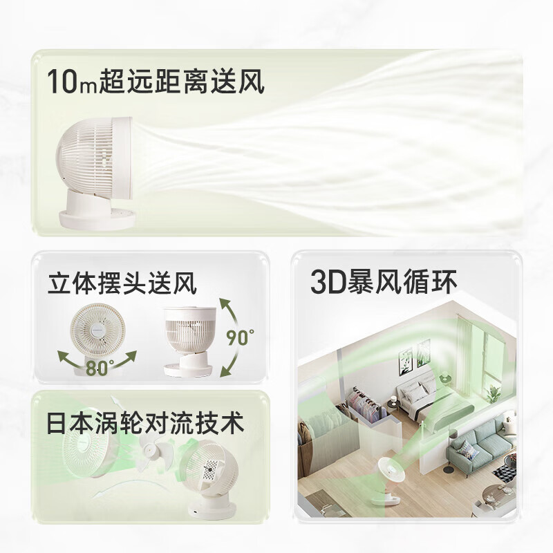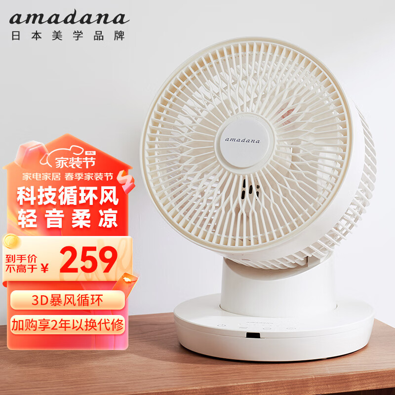 amadana空气循环扇桌面电风扇摇头台式电扇涡轮对流小型台扇办公室宿舍床上非 静音小风扇 A-FC007R升级款,遥控定时(带香薰盒)价格:399.00元!