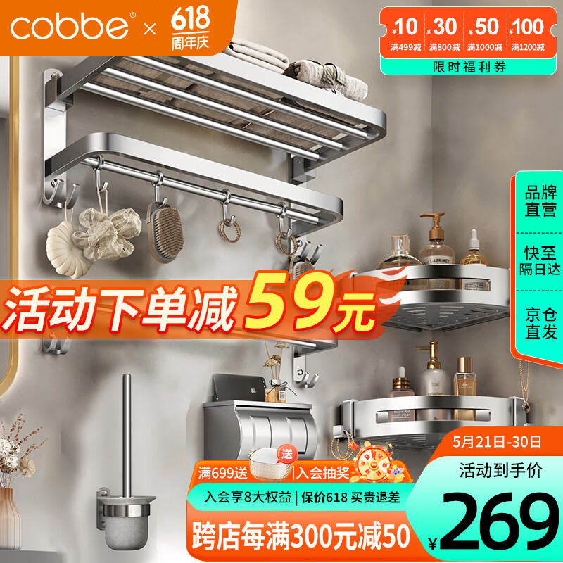 卡贝(cobbe)304不锈钢毛巾架浴室置物架卫生间双层浴巾架免打孔卫浴五金挂件价格:328.00元!