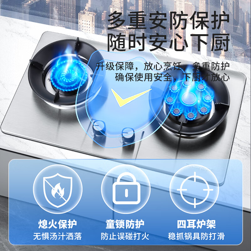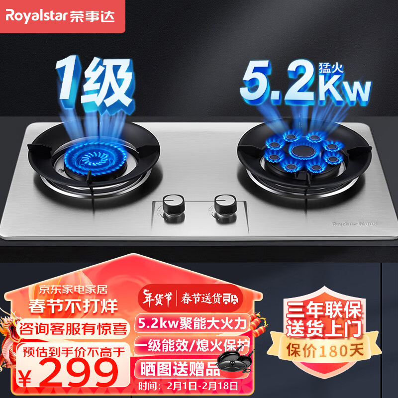 荣事达(Royalstar)燃气灶天然气双灶嵌入式家用5.2KW大火力九头鸳鸯台式不锈钢熄火保护猛火灶具 RSD-R207 天然气价格:299.00元!
