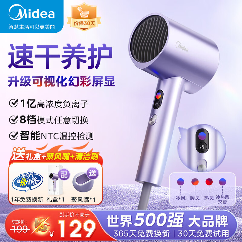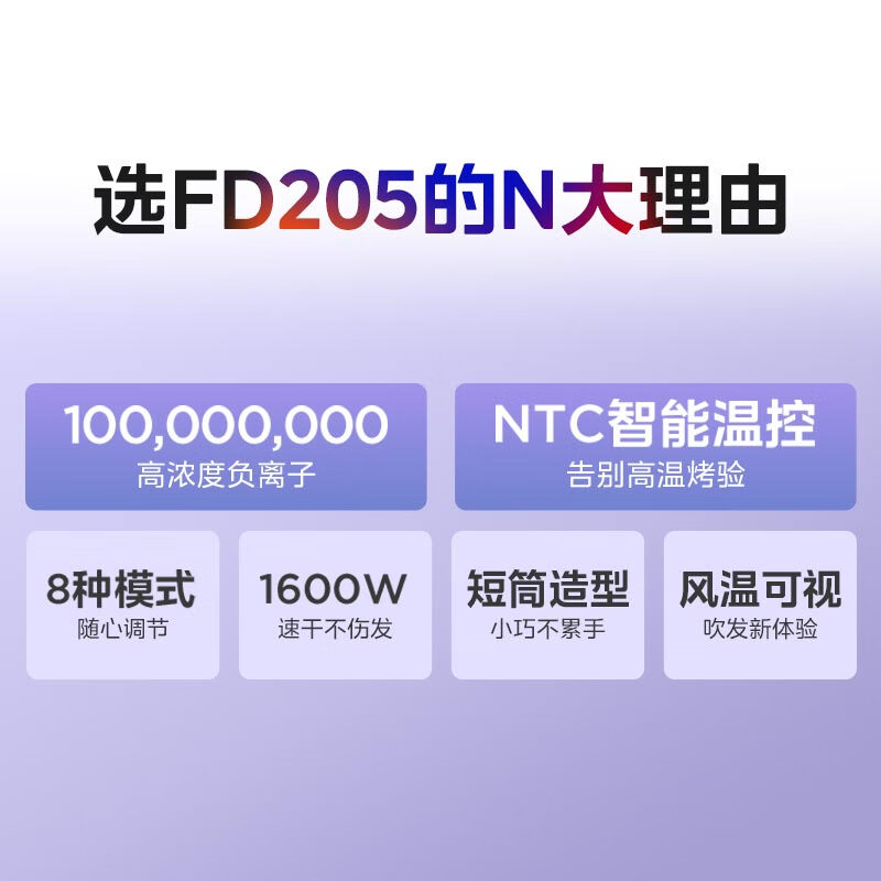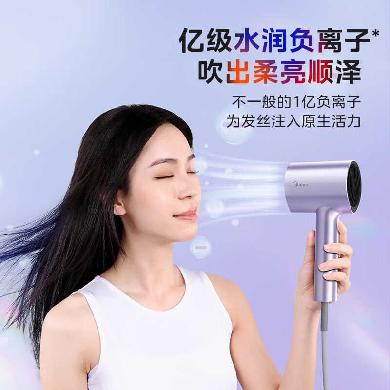 美的吹风机家用便携电吹风负离子护发不伤发大功率速恒温干大风力吹风筒三八妇女节礼物实用 1亿负离子 丨FD205极光紫价格:169.00元!