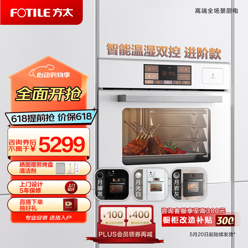 方太(FOTILE)彩膜屏款蒸烤箱一体机 月光白嵌入式家用 智能蒸烤炖炸四合一 手机智控55L大容量蒸箱烤箱02-EF1-W价格:5799.00元!