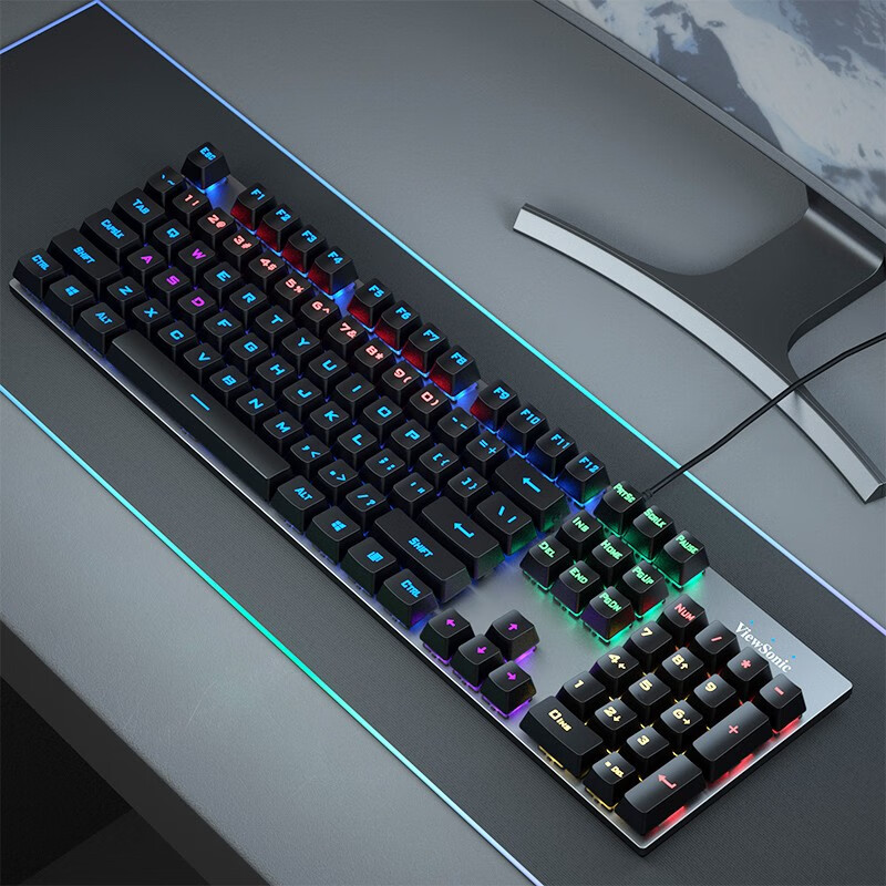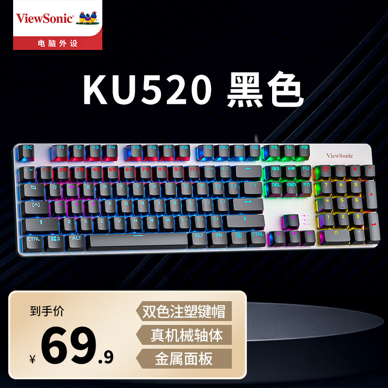 优派(ViewSonic)KU520机械键盘 电竞游戏键盘104键炫彩背光发光键盘有线键盘电脑外设优派键盘 青轴价格:69.90元!