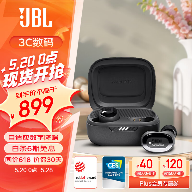 JBL LIVE FREE2真无线入耳式蓝牙耳机 降噪豆主动降噪 高音质音乐专业电竞游戏运动耳机 黑色价格:899.00元!