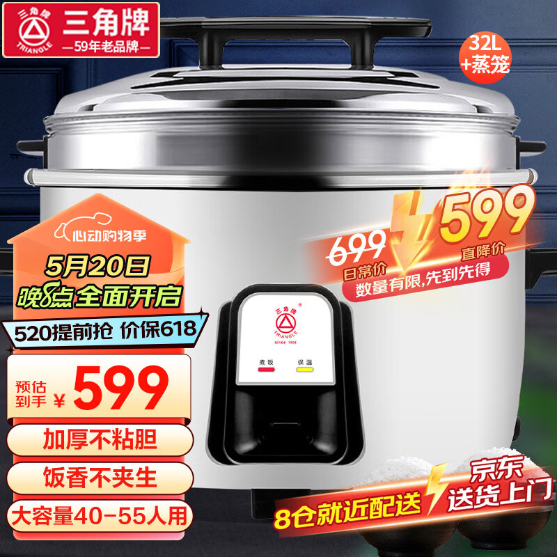 三角牌(Triangle)电饭煲大容量老式电饭锅食堂商用大电饭煲酒店饭店大型蒸饭锅 32升带蒸笼 40-55人适用价格:699.00元!