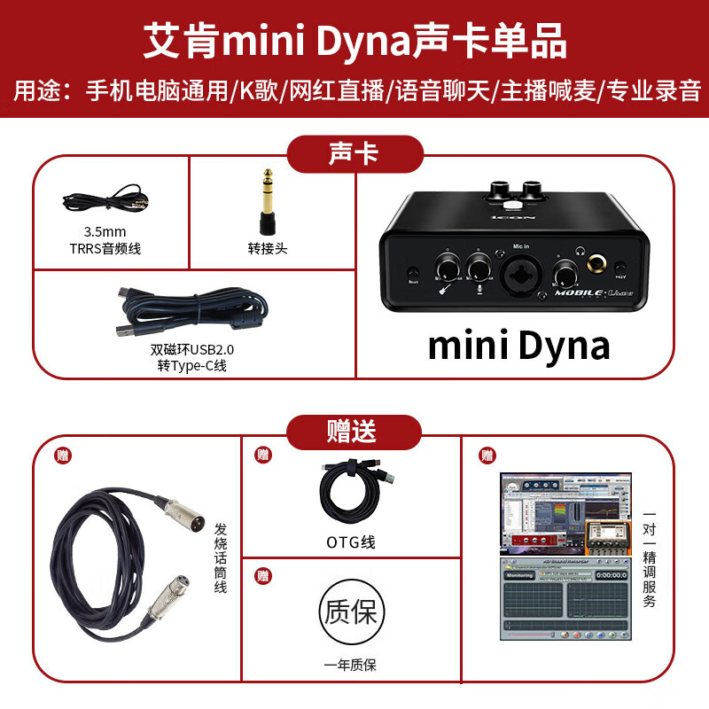 iCON艾肯mobileU mini外置声卡套装主播直播喊麦手机电脑专业录音k歌声卡设备 单品声卡价格:1199.00元!