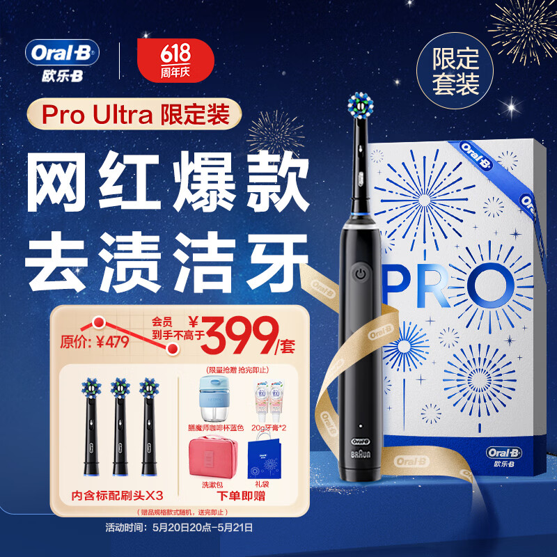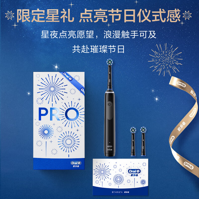 欧乐B成人电动牙刷Pro4Ultra武士黑礼盒3D声波圆头深度清洁送男友送女友生日礼物欧乐B黑武士520礼物价格:449.00元!
