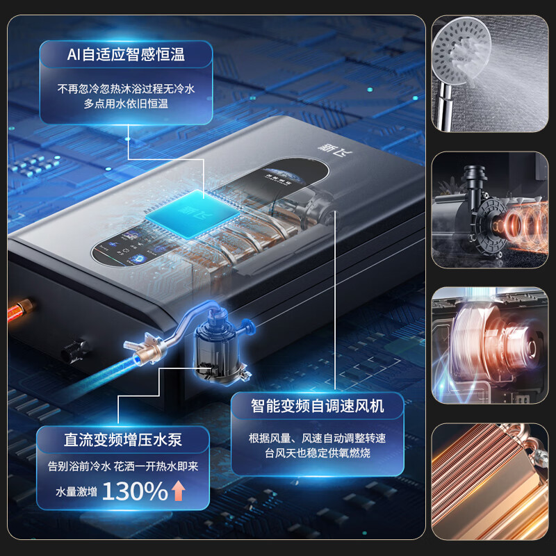 新飞12升 智能增压 燃气热水器 天然气强排式热水器 一键加压恒温速热 水气双调 低水压专用 星空灰 价格:759.00元!