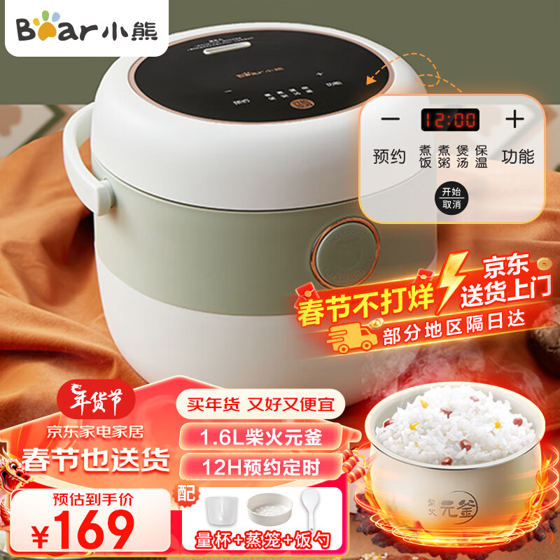 小熊(Bear)迷你电饭煲 电饭锅 家用电饭煲1-2人智能预约多功能小型上蒸下煮小型煲汤米饭锅元釜内胆小2人 升级陶瓷油内胆价格:199.00元!