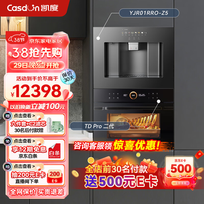 凯度(CASDON)嵌入式双热风蒸烤炸炖一体蒸烤箱SR6028FE22-TD Pro+Z5嵌入式直饮机一体净饮机价格:12398.00元!