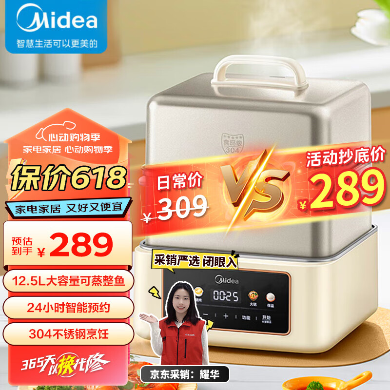 美的(Midea)电蒸锅 电煮锅电火锅 火锅多功能锅家用蒸包子锅 电热锅多用途锅24小时预约双层蒸笼MZ-ZGC262388价格:289.00元!