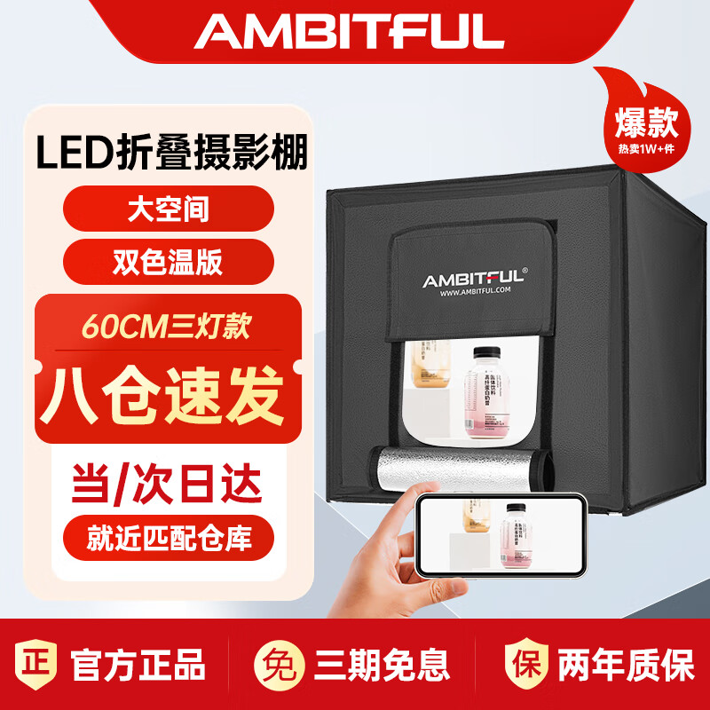 AMBITFUL 60cm摄影棚三灯套装套装摄影棚小型LED棚拍照摄影灯箱产品拍摄道具迷你静物箱灯柔光箱影棚拍摄台价格:285.30元!