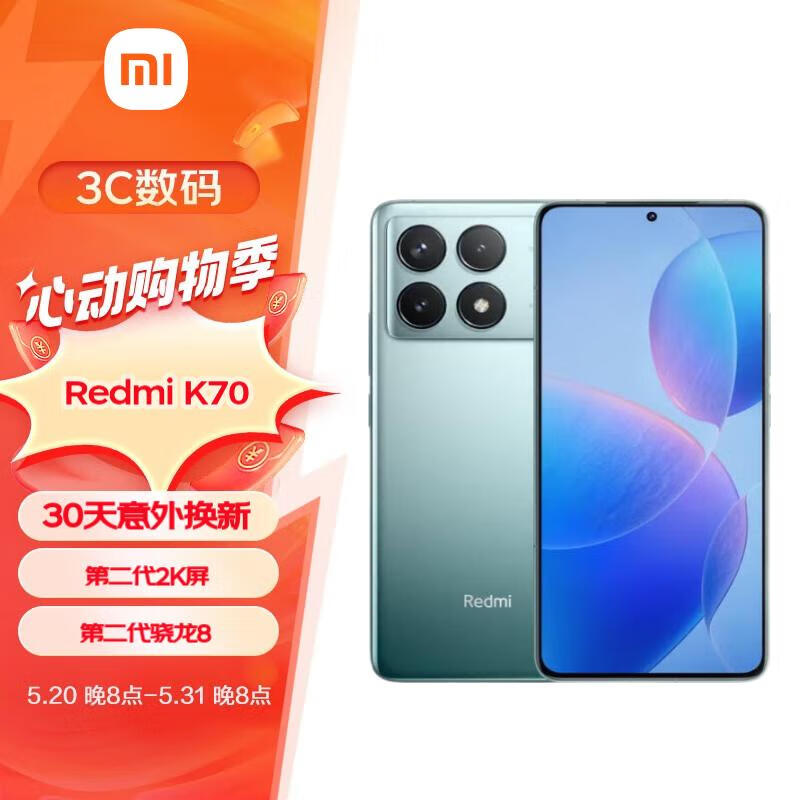 小米(MI)Redmi K70 第二代骁龙? 8 小米澎湃OS 第二代2K屏 120W+5000mAh 16GB+256GB 竹月蓝价格:2399.00元!