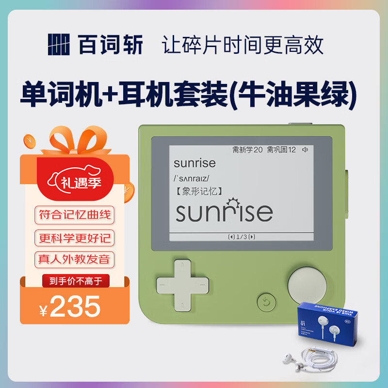 百词斩单词机高中小初口袋单词机便携 英语学习机 学生用 真人发音 绿色耳机套装价格:239.00元!