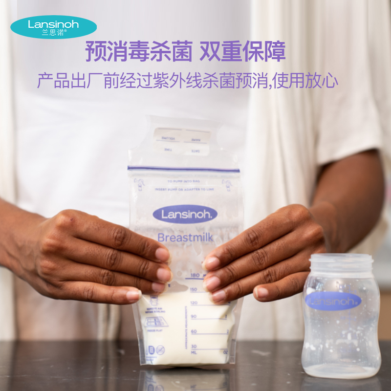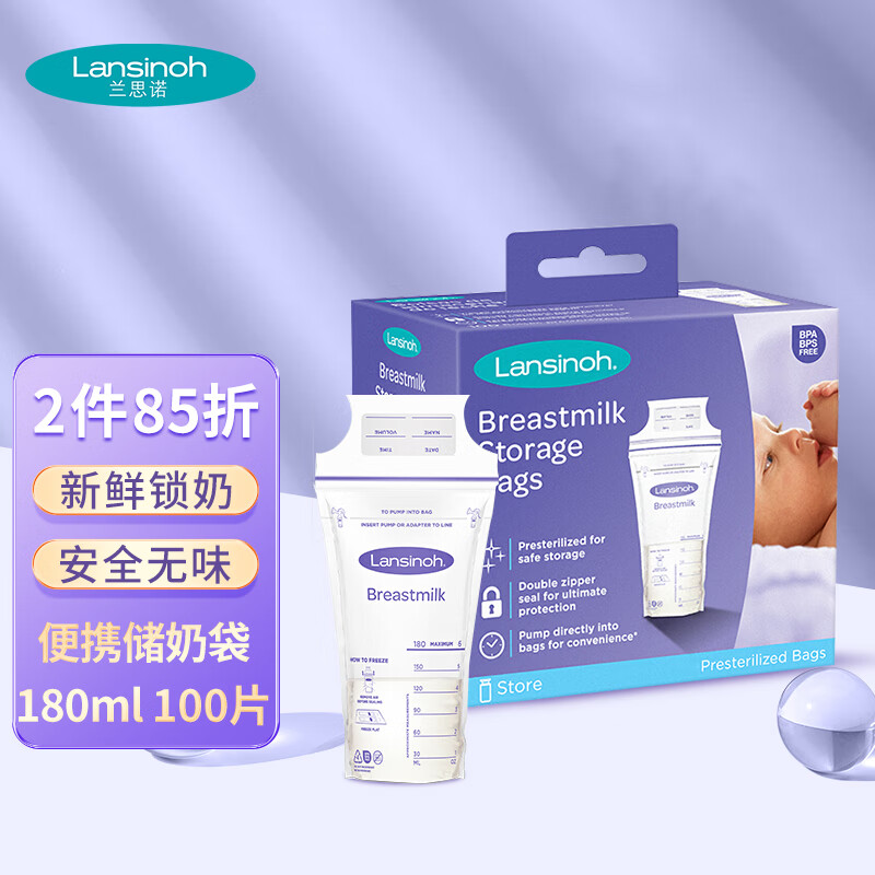 兰思诺(LANSINOH)储奶袋母乳储存袋冷藏保鲜存奶袋180ml一次性母乳袋100片装价格:118.00元!