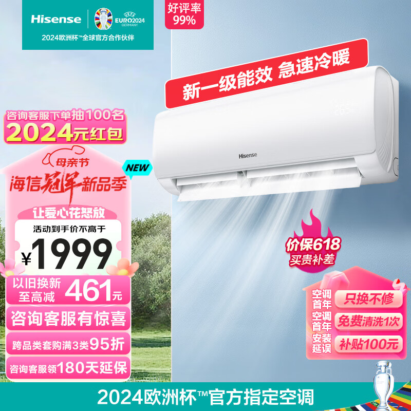 海信(Hisense)1.5匹 速冷热 新一级能效变频冷暖 高温自清洁APP远程遥控壁挂式卧室空调挂机KFR-34GW/E270-X1价格:1898.00元!