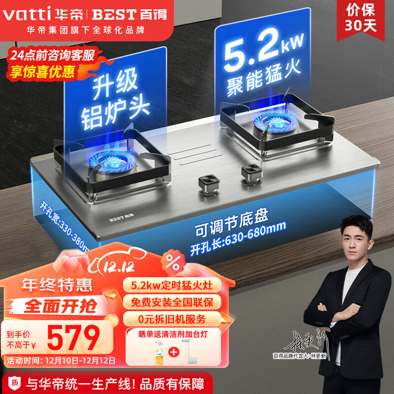 百得(BEST)华帝出品 煤气灶燃气灶天然气液化气双灶炉具 5.2KW家用不锈钢面板猛火台嵌入两用式灶JZT-QE50G价格:579.00元!