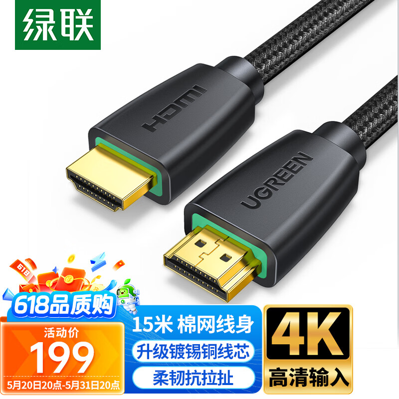 绿联 HDMI线 4k数字高清线 3D视频线 笔记本电脑电视盒子连接电视投影仪显示器数据连接线 15米价格:199.00元!