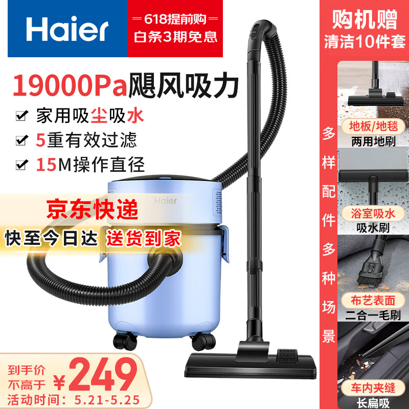 海尔(Haier)加厚防锈桶式吸尘器家用工业装修保洁大功率大吸力干湿两用HZ-T8101P价格:248.00元!