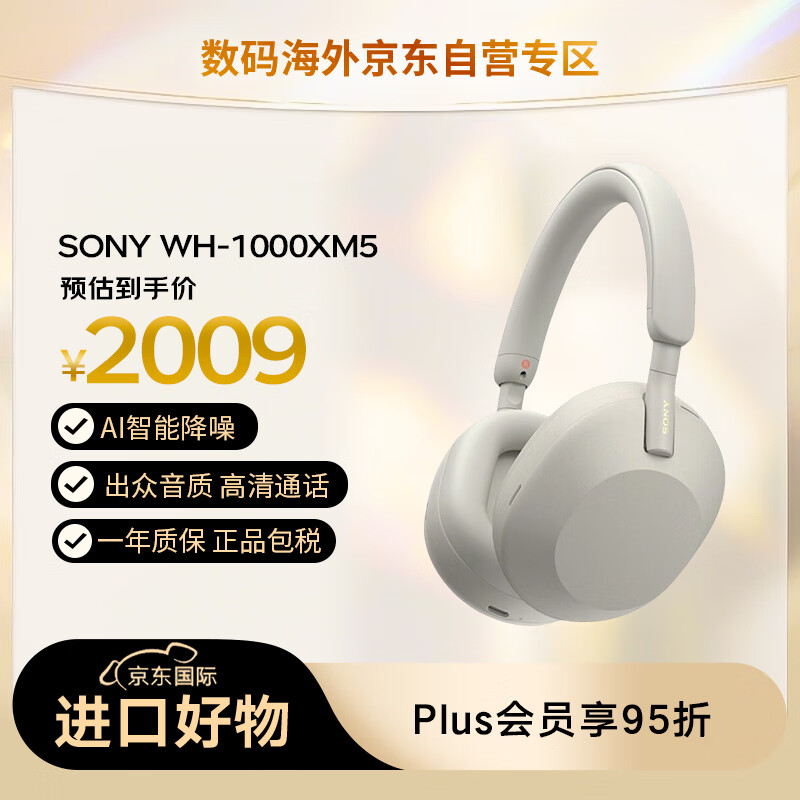 索尼(SONY)WH-1000XM5 头戴式无线降噪耳机 AI智能降噪(1000XM4 升级款)铂金银价格:2009.00元!