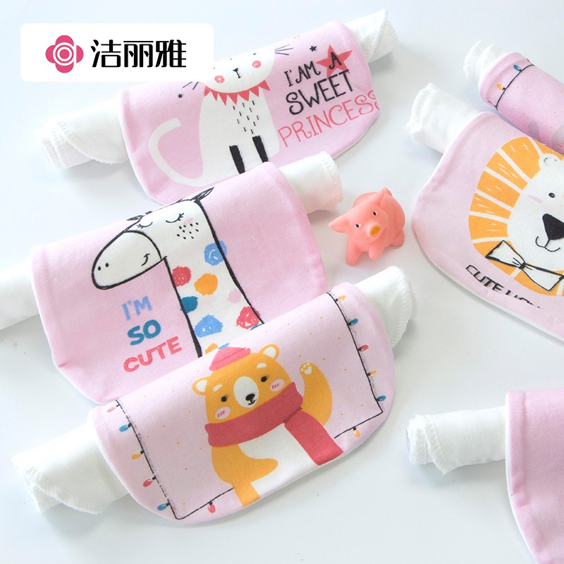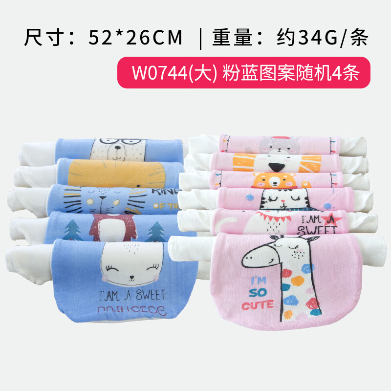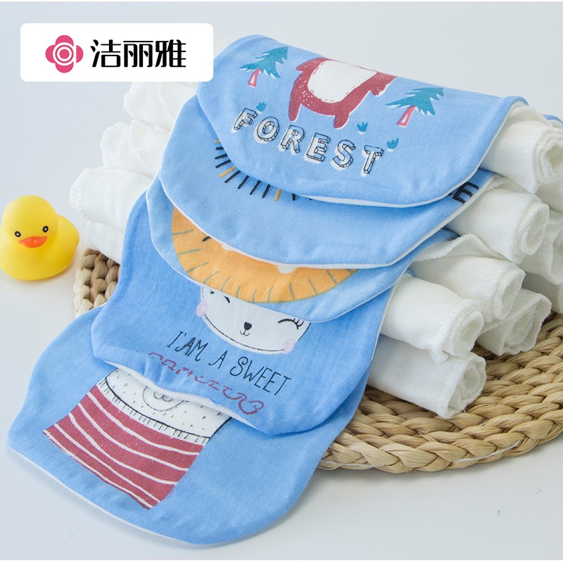 洁丽雅A类婴儿童6层纱布加厚吸汗巾 纯棉宝宝隔汗巾卡通垫背巾大号4条装价格:34.90元!