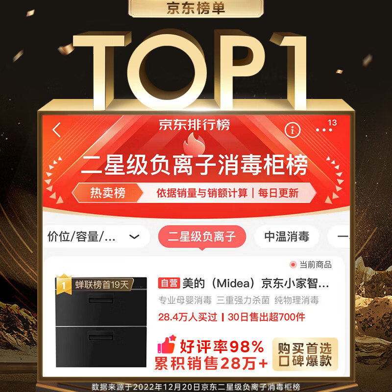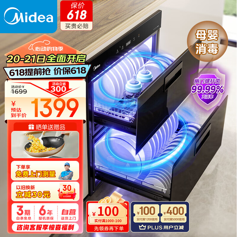 美的(Midea)消毒柜嵌入式家用 厨房餐具碗柜碗筷 离子净味烘干 110L双层大容量 京东小家智能MXV-ZTD110B01-R价格:1499.00元!
